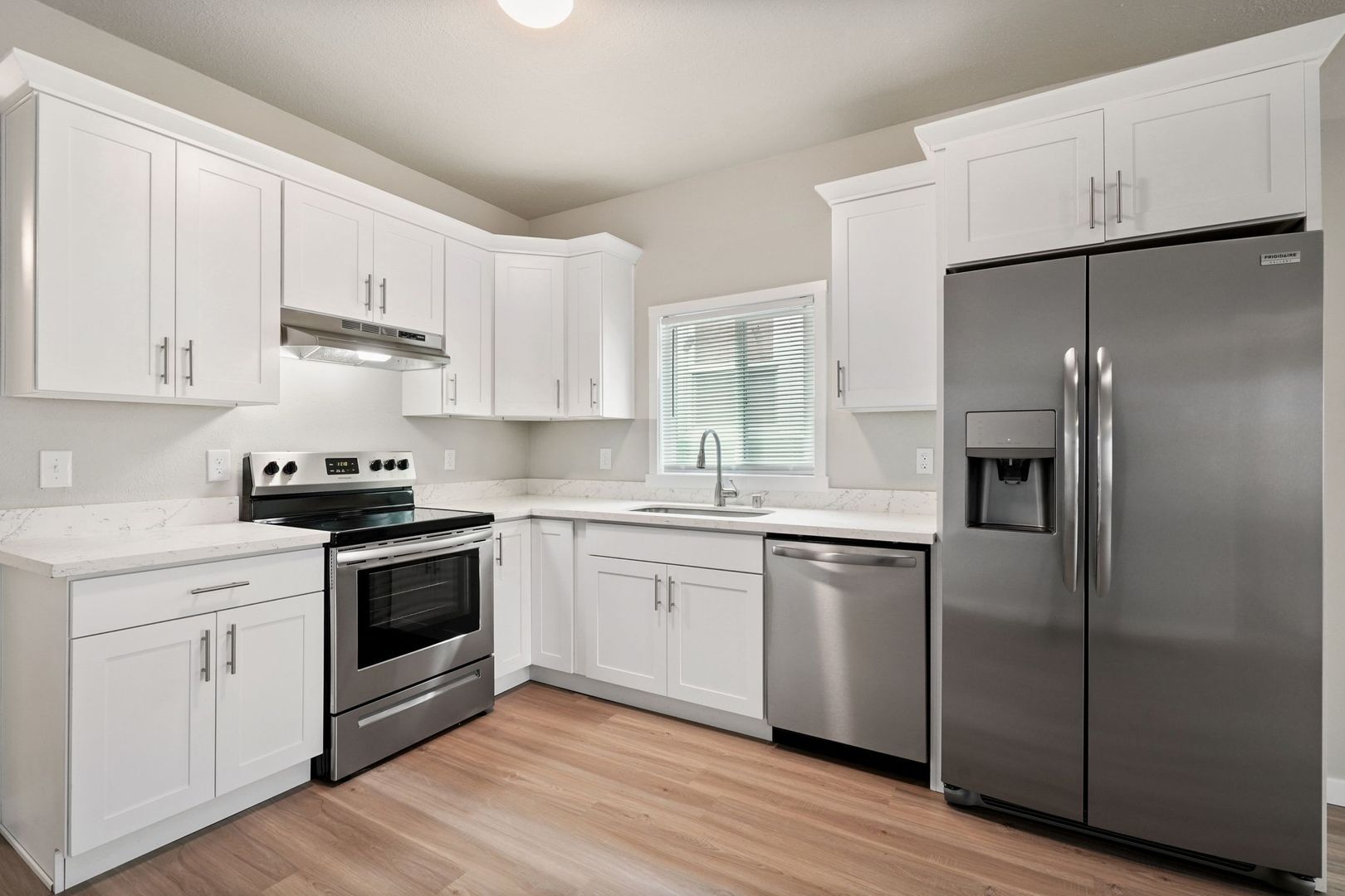 Recently remodeled charming home features 3 bedrooms and 1 bathroom. New vinyl flooring, and new carpet in the bedrooms. Freshly painted. All new kitchen cabinets, stainless steel appliances and washer/dryer in unit. Close to downtown and City bus lines.