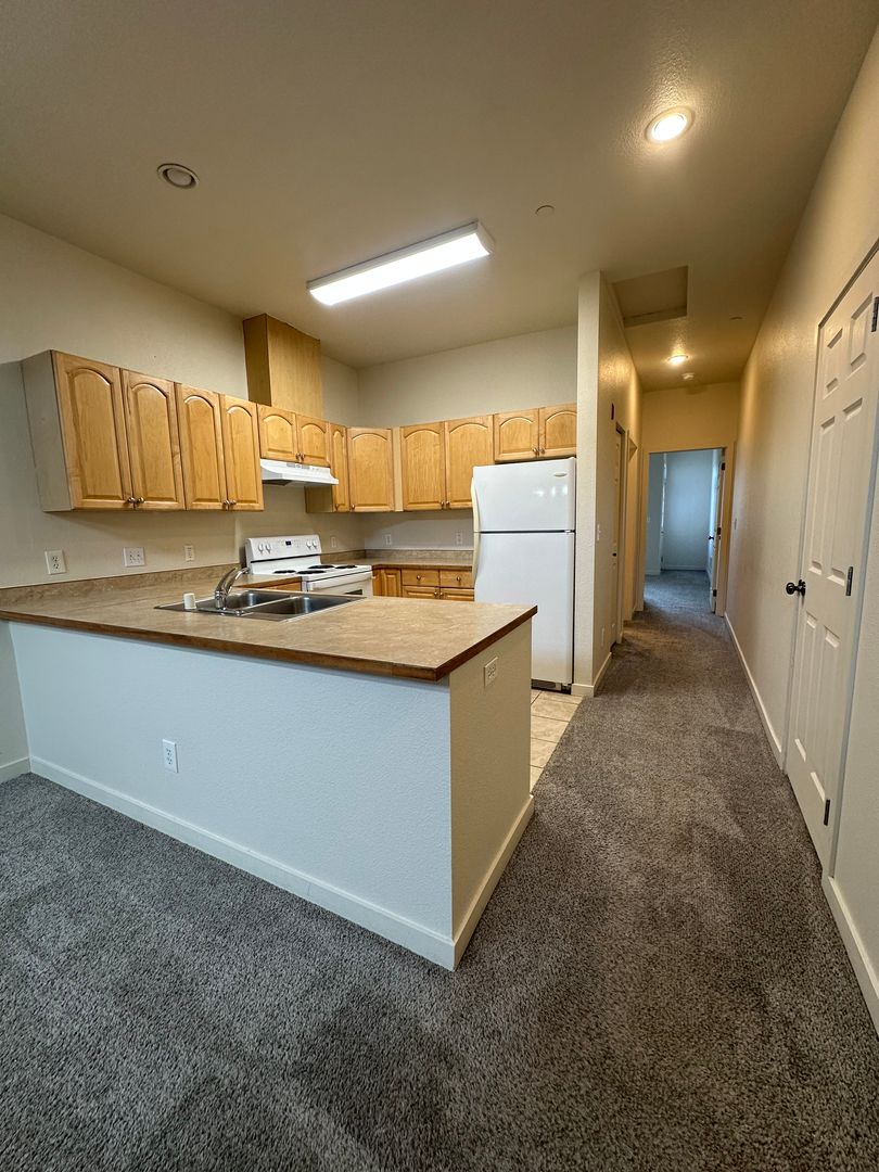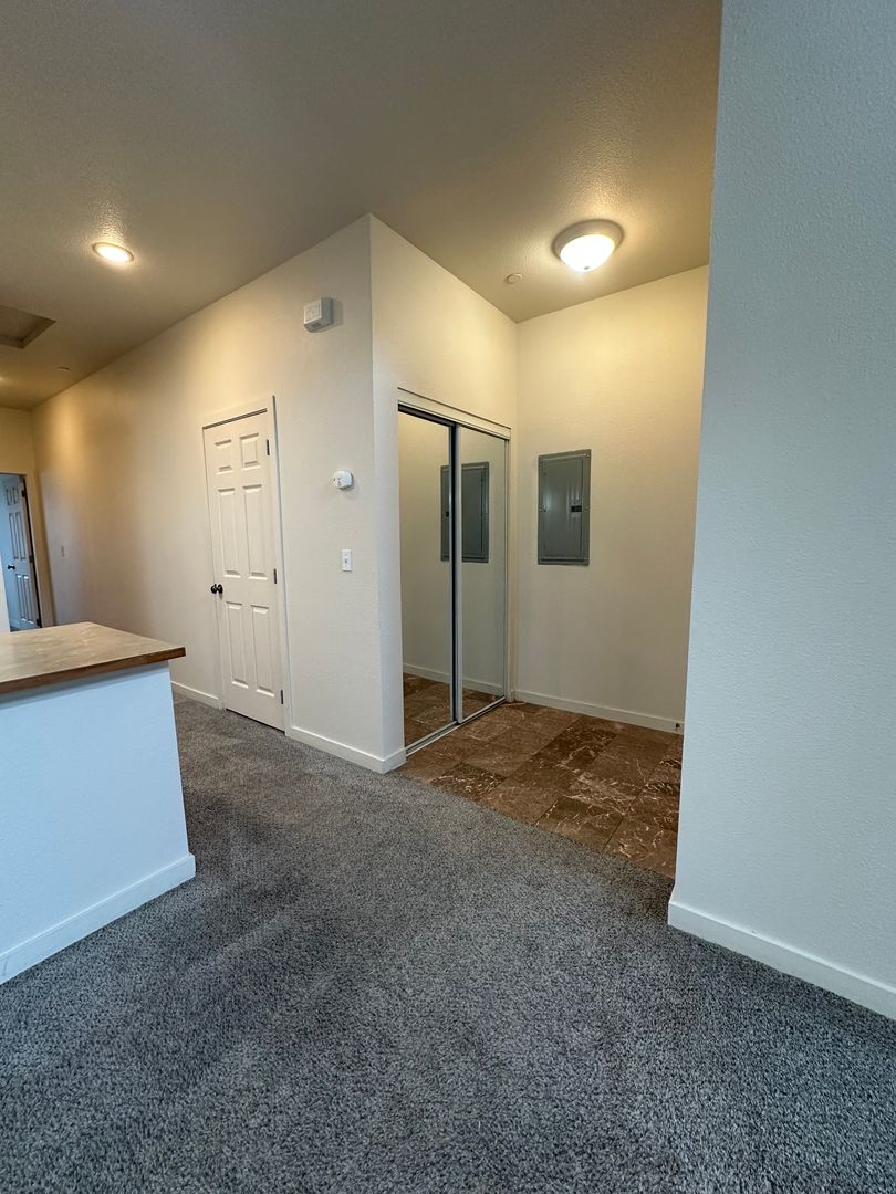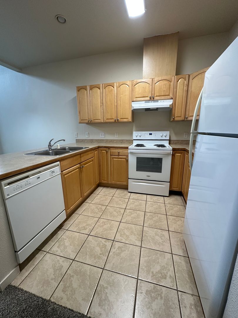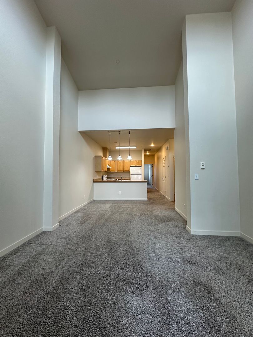 Amazing Condo style ground level entry 1 bedroom 1 bathroom unit! This unit features a large living and dining area with vaulted ceilings, a kitchen with bar seating, an attached 2nd story balcony off the bedroom, and an in-unit washer and dryer!